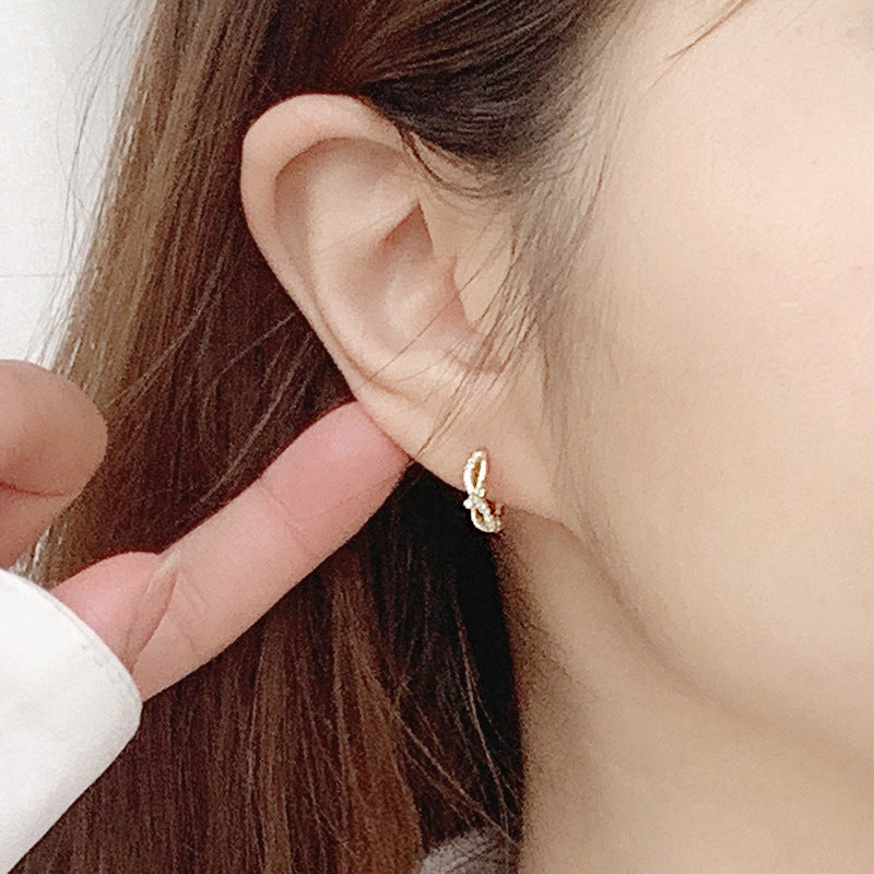 Casual CZ Mini Bow-knot 925 Sterling Silver Hoop Earrings