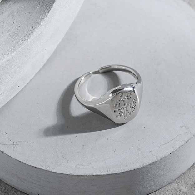 Classic Round Flowers Pattern 925 Sterling Silver Adjustable Ring