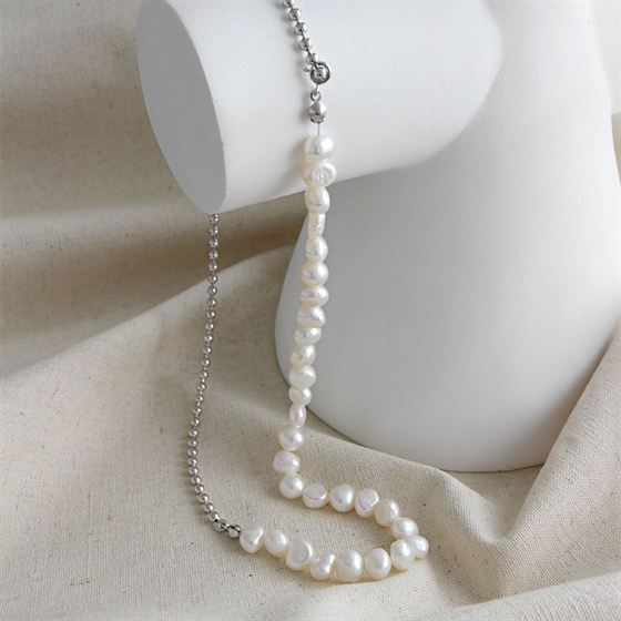 Elegant Irregular Natural Pearls 925 Sterling Silver Choker Necklace