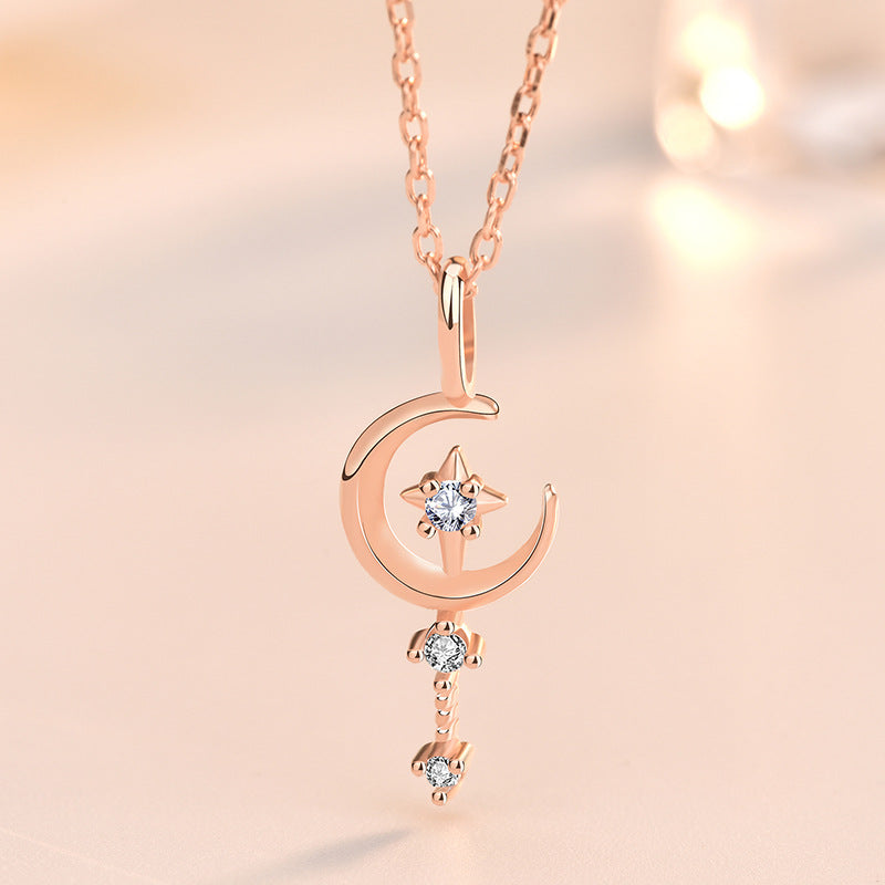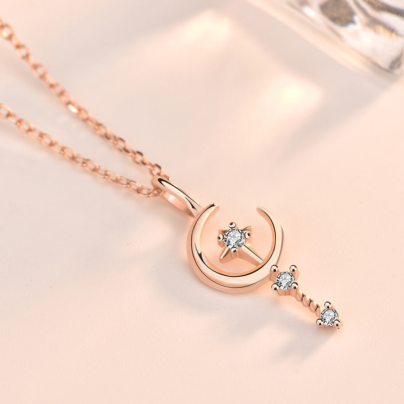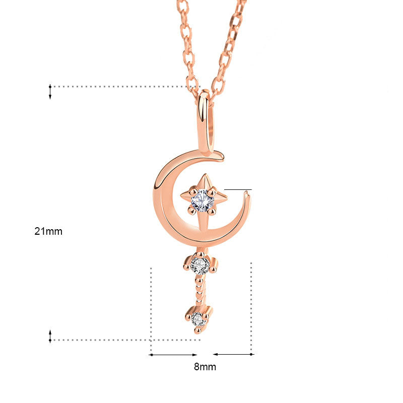 New CZ Crescent Moon Magic Wand 925 Sterling Silver Necklace