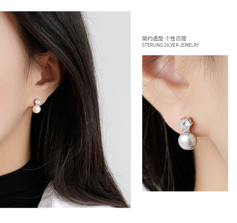 Women Elegant Natural Pearl 925 Sterling Silver Earring