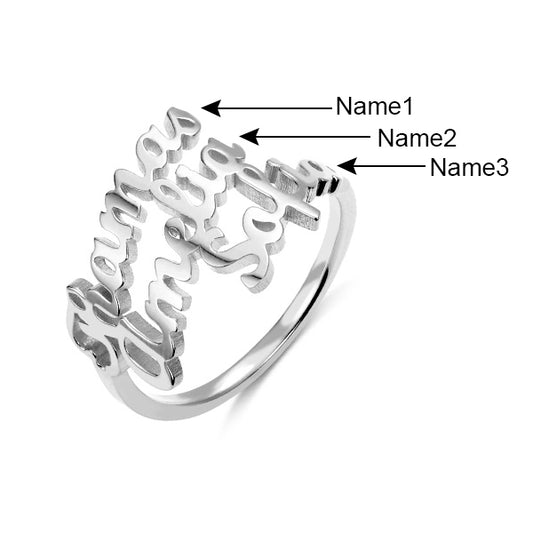 Personalized 3 Names Ring in Silver