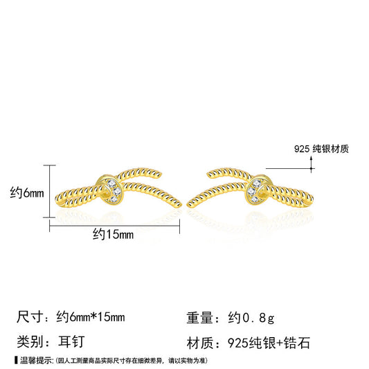Sweet Mini CZ Bow Knot 925 Sterling Silver Stud Earrings