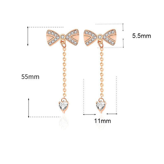 Modern CZ Bowknot Tassels 925 Sterling Silver Dangling Earrings