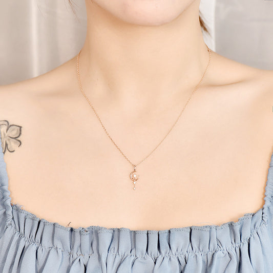 Cute CZ Crescent Moon Mouse 925 Sterling Silver Necklace