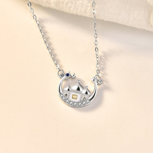 Women CZ Star Moon Castle 925 Sterling Silver Necklace
