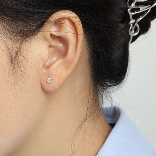 Cute Mini CZ Crescent Moon Cloud 925 Sterling Silver Stud Earrings