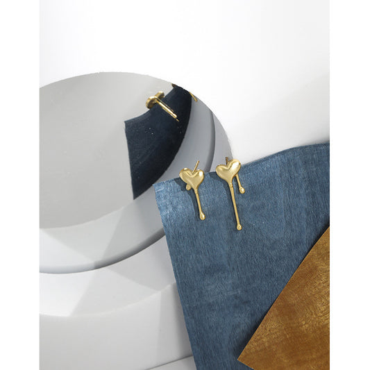 Asymmetry Heart Dropping 925 Sterling Silver Dangling Earrings