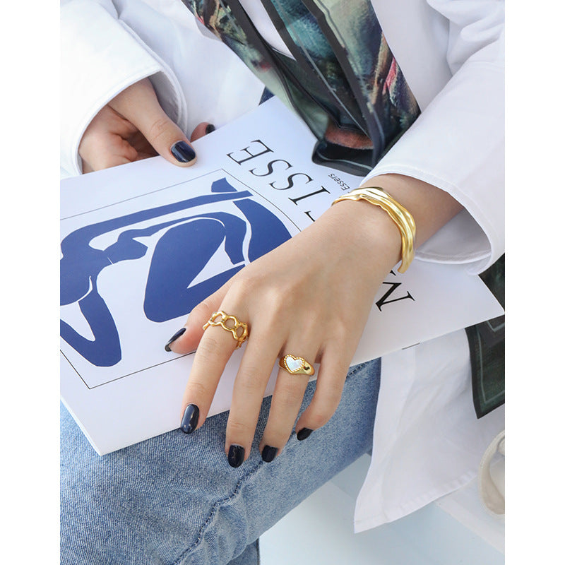 Girl Heart Mother of Shell 925 Sterling Silver Adjustable Ring