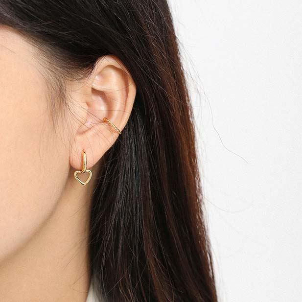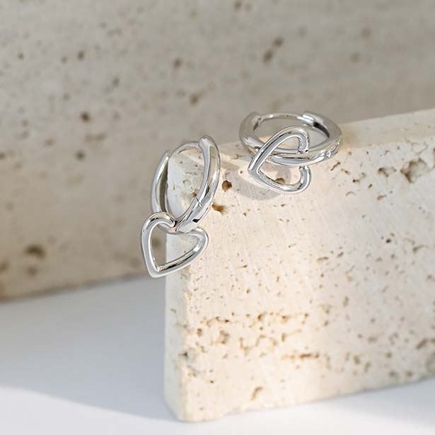 Girl Hollow Heart 925 Sterling Silver Hoop Earrings