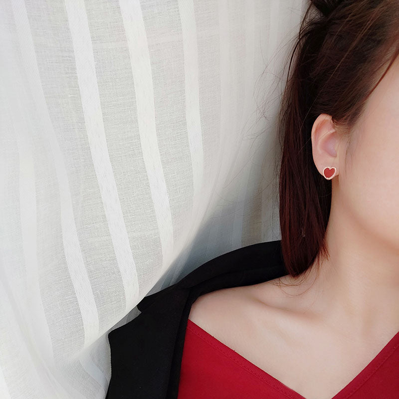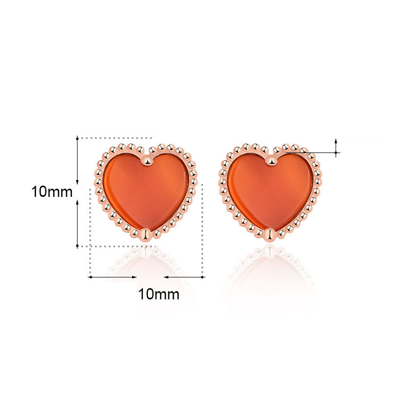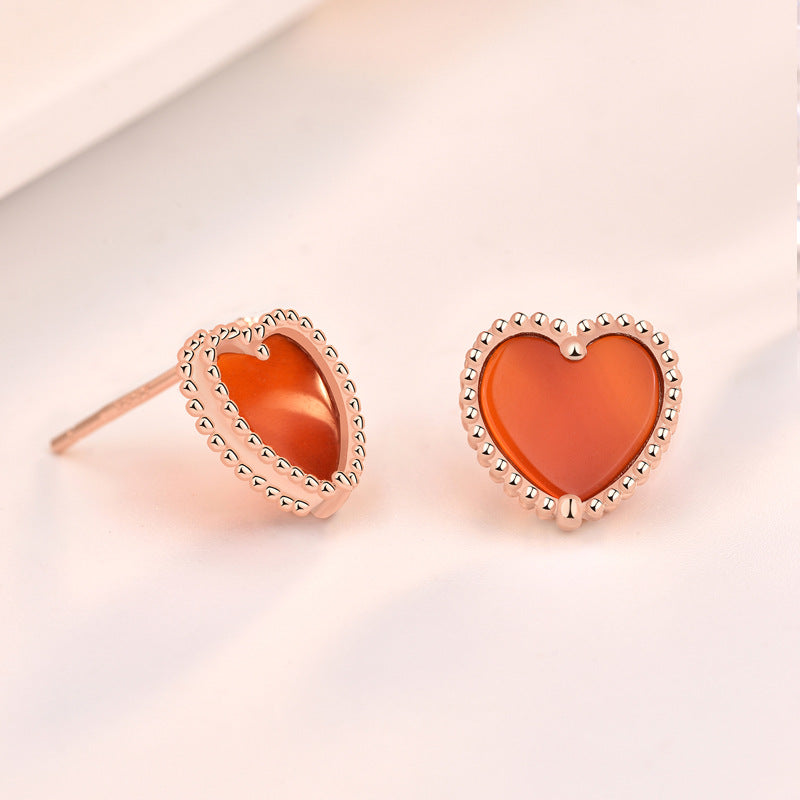 Honey Moon Red Natural Agate Heart 925 Sterling Silver Stud Earrings