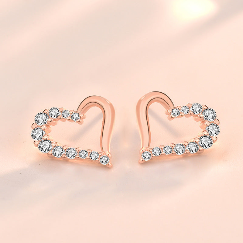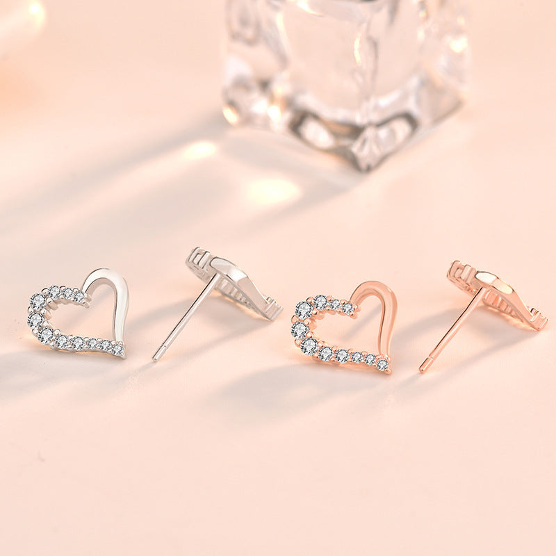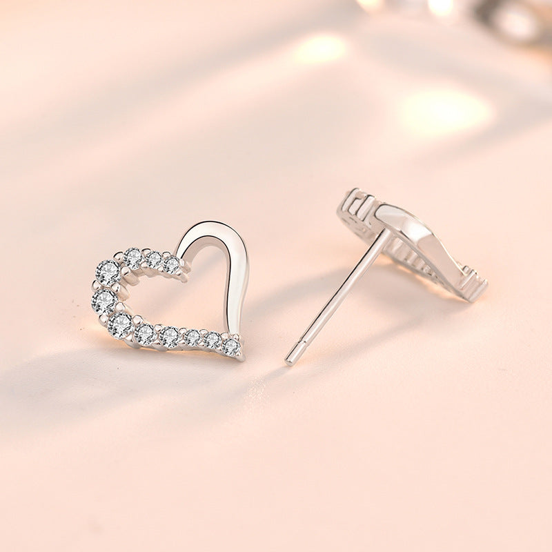 Irregular CZ Hollow Heart 925 Sterling Silver Stud Earrings