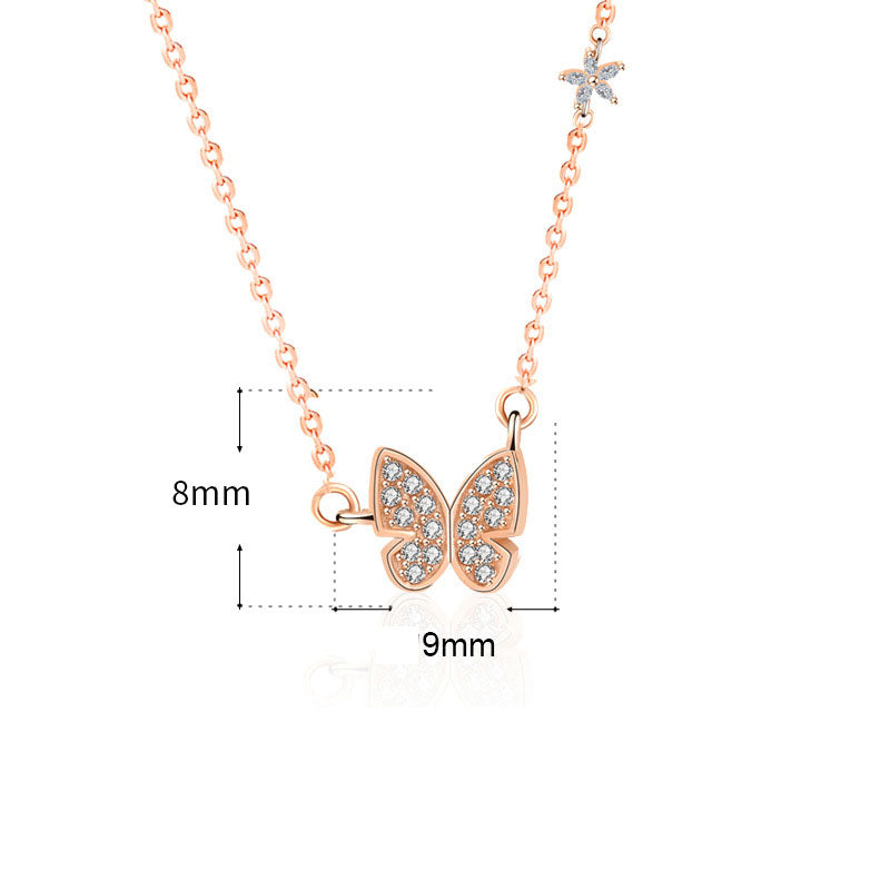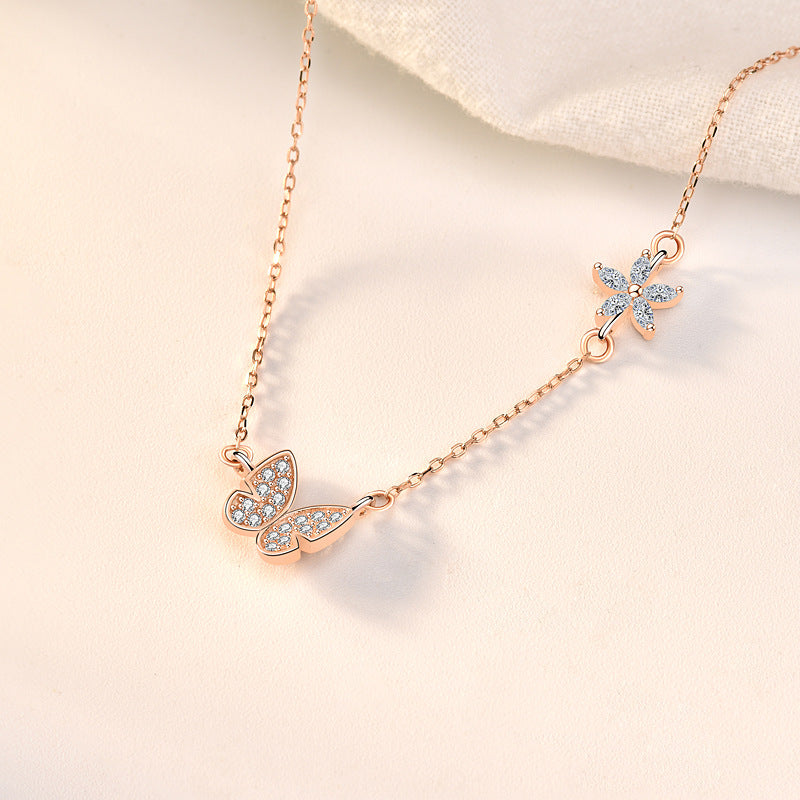 Lady CZ Butterfly Flower 925 Sterling Silver Necklace