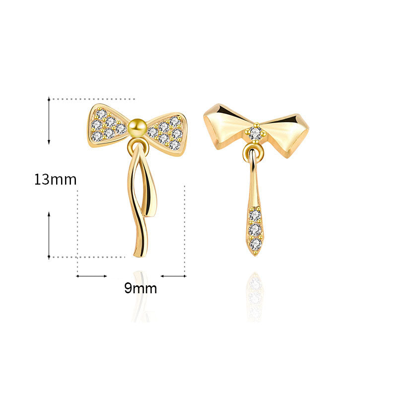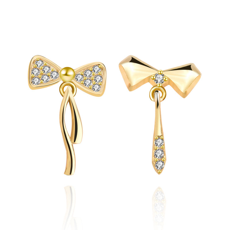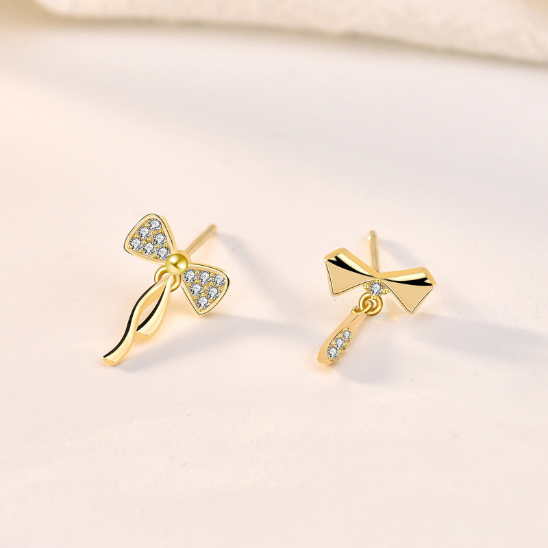 Sweet Asymmetry CZ Bowknot 925 Sterling Silver Dangling Earrings