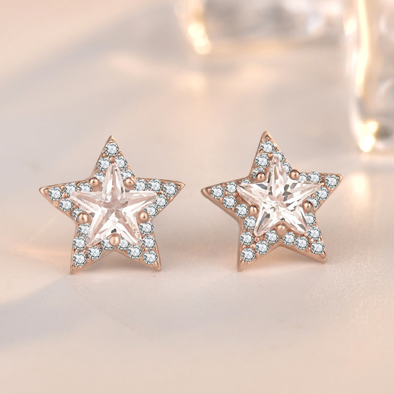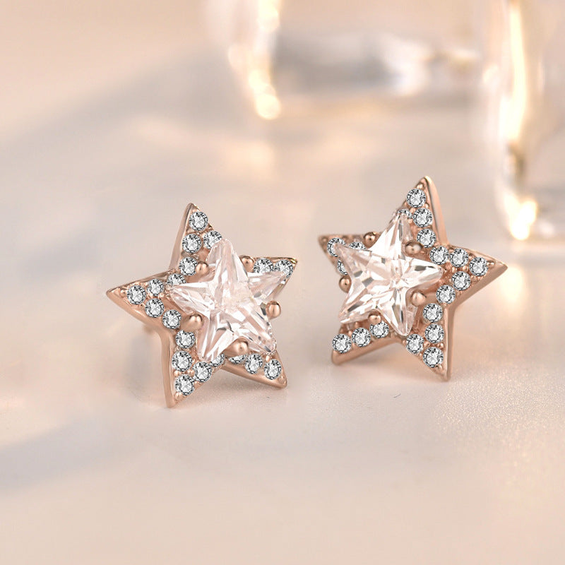 Sweet CZ Stars 925 Sterling Silver Stud Earrings