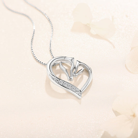 Dainty Mother Horse And Baby Horse Necklace in Sterling Silver