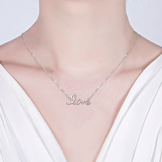 Dainty Sterling Silver 925 "Love" Word Pendant Necklace for Her