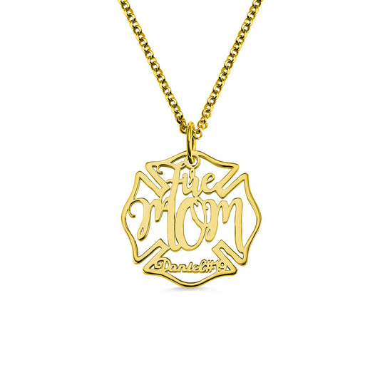 Firefighter Mom Name Badge Necklace, Personalized gift for firefighter mothers