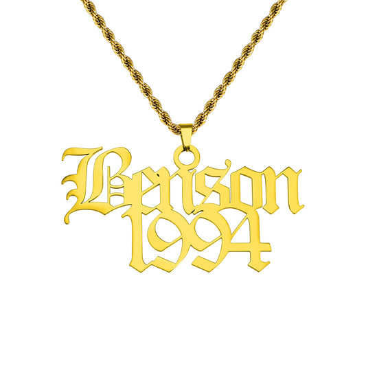 Men Old English Font Name Necklace, Gothic Style Name Pendant for him, Old English Script Nameplate, Custom Goth Jewelry