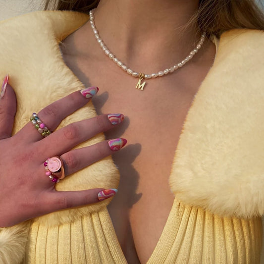 Pearl Necklace with Personalized Gold Initial Pendant, Dainty Freshwater Pearls Initial Necklace for Bridesmaids/Women Gold Jewelry Gifts