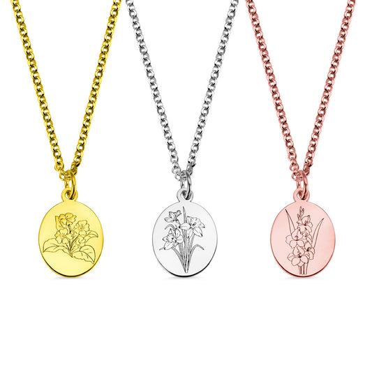 Personalized Birth Flower Name Necklace, Custom Floral Necklace for her