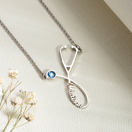 Personalized Stethoscope Name Necklace with Birthstone, custom gift for doctors nurses or medical students