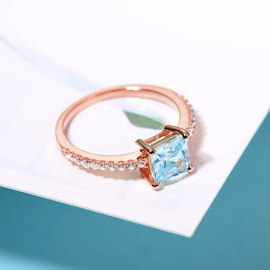 Princess-Cut Birthstone Ring in Rose Gold Full Birthstone