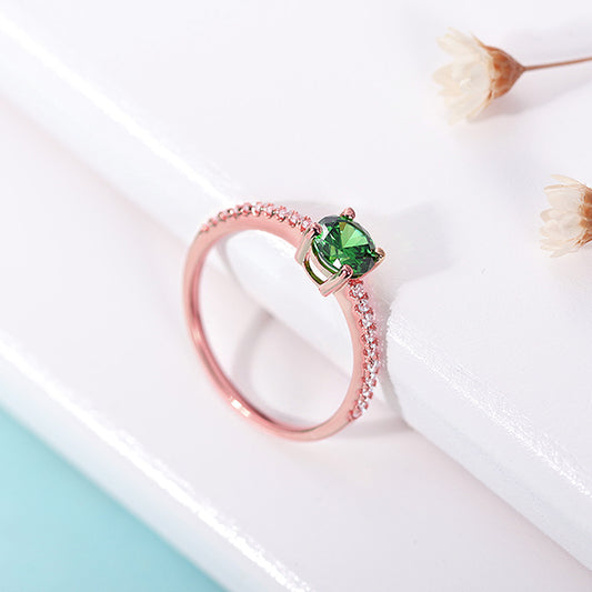 Round Birthstone Ring in Rose Gold Full Birthstone