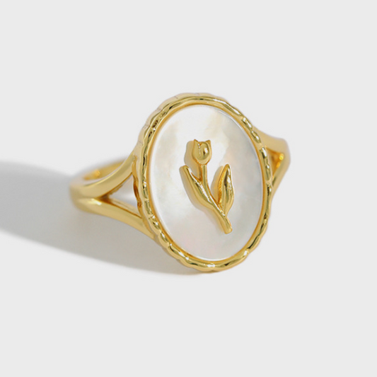 Shell Oval Tulips Flower 925 Sterling Silver Ring