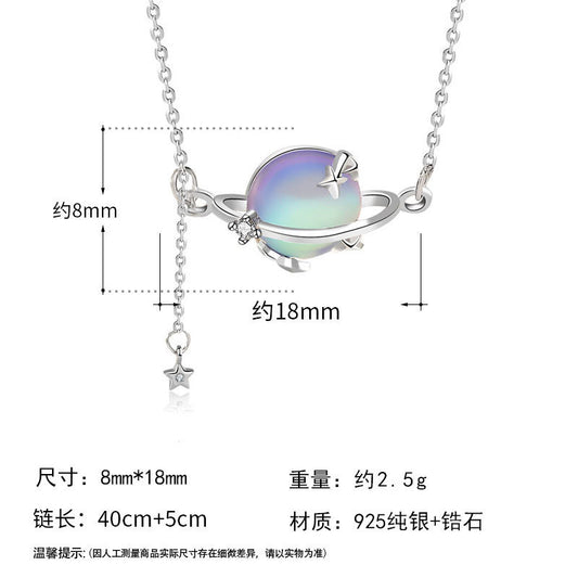 Sale Natural Moonstone Planet Star 925 Sterling Silver Necklace
