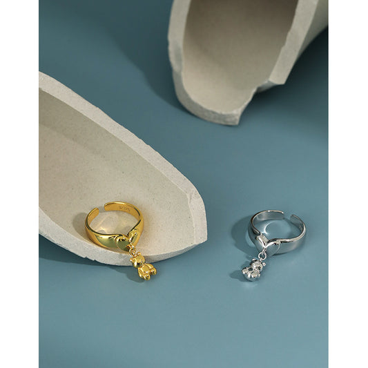 Cute Mini Bear Heart 925 Sterling Silver Adjustable Ring