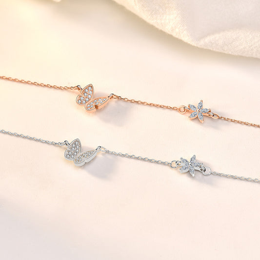 Lady CZ Butterfly Flower 925 Sterling Silver Necklace