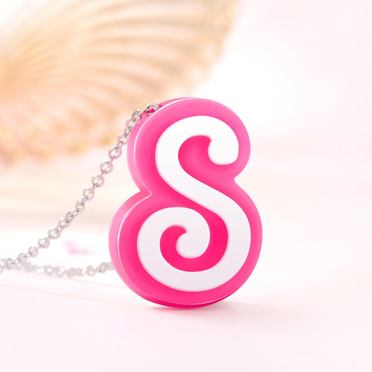 Personalized 3D Printed Initial Necklace, Stocking Filler Jewelry, Pink Doll Style Letter, Dopamine Necklace, Tiny Doll Accessory, Party Gift for Girl