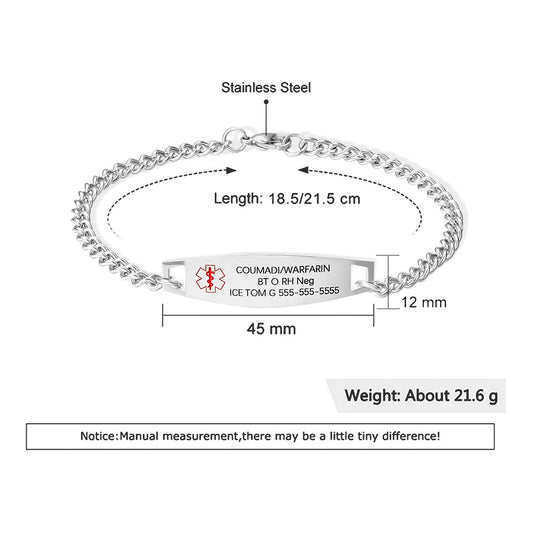 Custom Medical Alert ID Bracelet with Engraving, Stainless Steel Emergency Identification Bracelet, Elegant Medical Bracelets Jewelry for Women