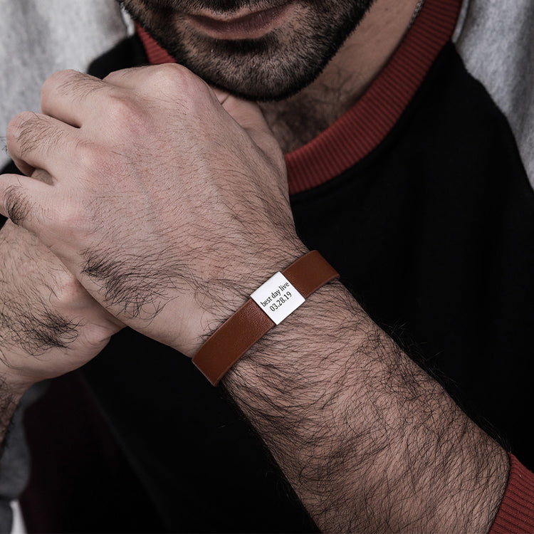Engraved Leather Bracelet For Men