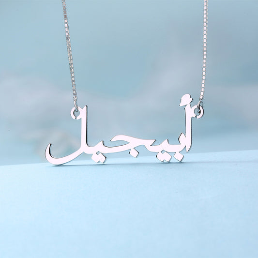 Sterling Sliver Arabic Name Necklace for her, Custom Arabic Eid Gift for her, Personalized Signature Arabic Necklace