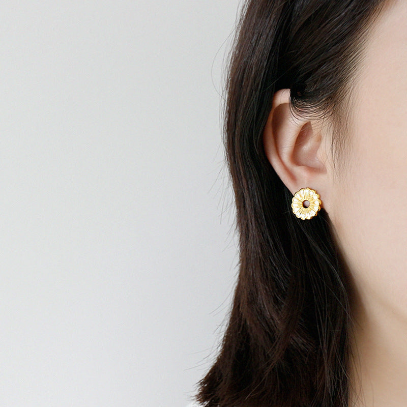 Women Chrysanthemum Flowers 925 Sterling Silver Stud Earrings