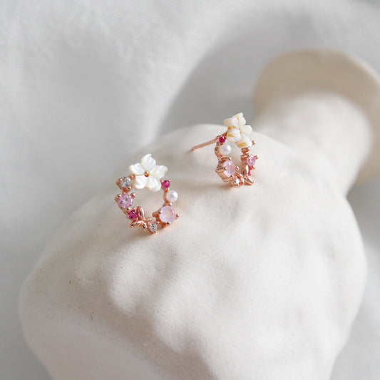 Beautiful Pink CZ Shell Flowers Garland 925 Sterling Silver Stud Earrings