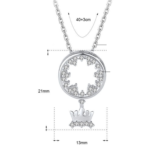 Elegant CZ Circle Crown 925 Sterling Silver Necklace