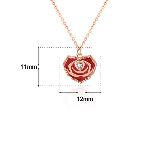 Beautiful Red Rose Flower Heart CZ 925 Sterling Silver Necklace