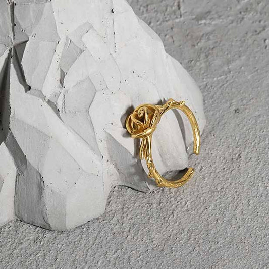 Beautiful Hollow Rose Flower 925 Sterling Silver Adjustable Ring