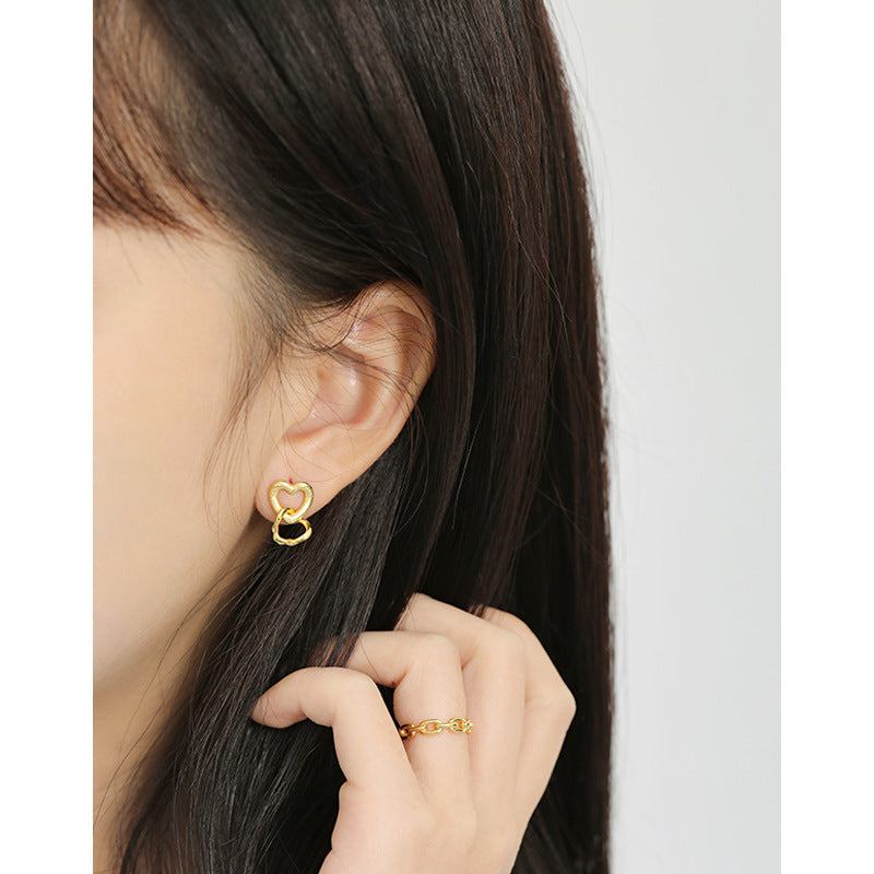 Girl Hollow Heart in Heart 925 Sterling Silver Dangling Earrings